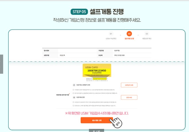 작성하신 가입정보로 셀프개통진행하면 됩니다.
