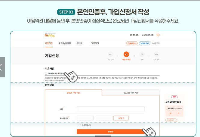 모빙 유심 수령 후 셀프 가입신청 진행 방법