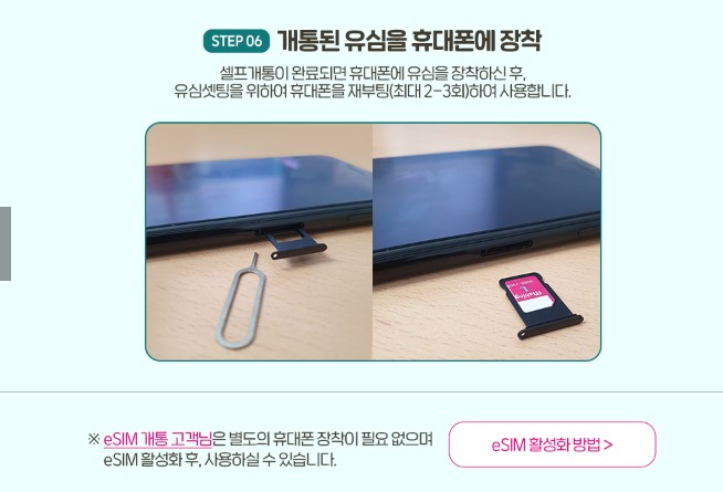 esim 사용가능 기종이 아니거나, esim설치가 어려우신 분들은 '유심'을 구입하시는 걸 추천드립니다.
