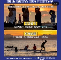 제28회 부산바다축제가 7월26일~7월28일까지 다대포해수욕장에서 열립니다. 부산바다축제에 가시는 분들은 미리 이벤트 참여하여 5성 호텔 윈덤 그랜드 부산 Premium 숙박권 1매, 더브릿지2인 식사권1매, 더델리 생토노레 케이크 교환권1매가 경품