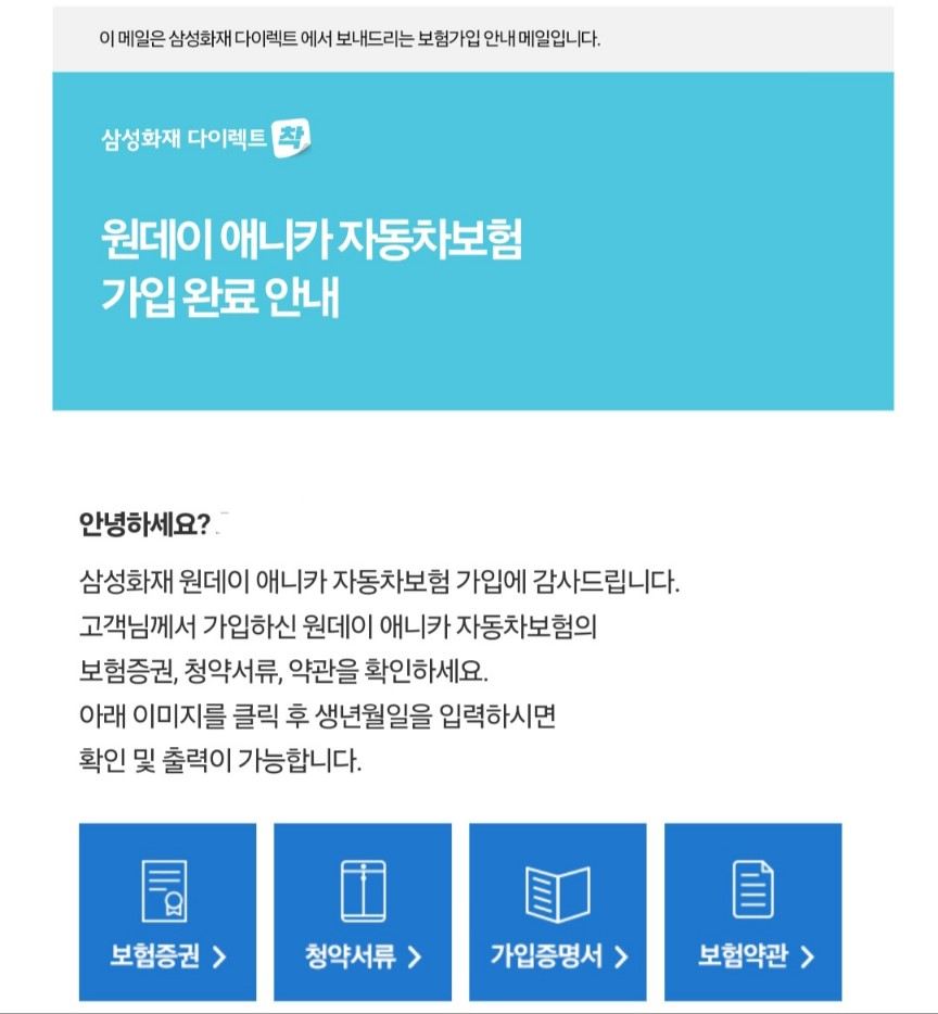원데이보험은 자동차 기본보험 , 렌터카회사에서 기본적으로 가입한 보험 보장내용(대물, 대인, 대손)을 빼고 나머지를 보장해 준다고 합니다.