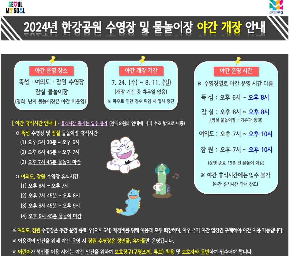 2024년 한강공원 수영장 및 물놀이장 야간 개장 안내