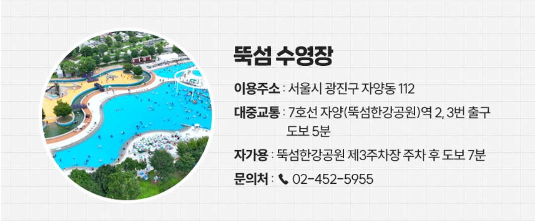 ✅ 이용장소 : 뚝섬, 여의도, 잠원수영장 / 난지, 양화, 잠실 물놀이장