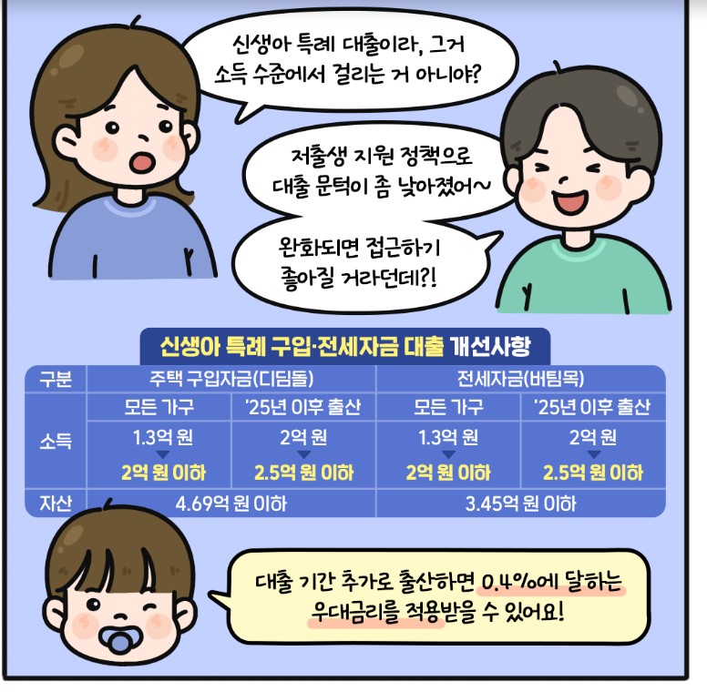 연 소득 2억 5천만 원 이하 가구도 신생아를 위한 특별 주택 대출을 신청할 수 있습니다.